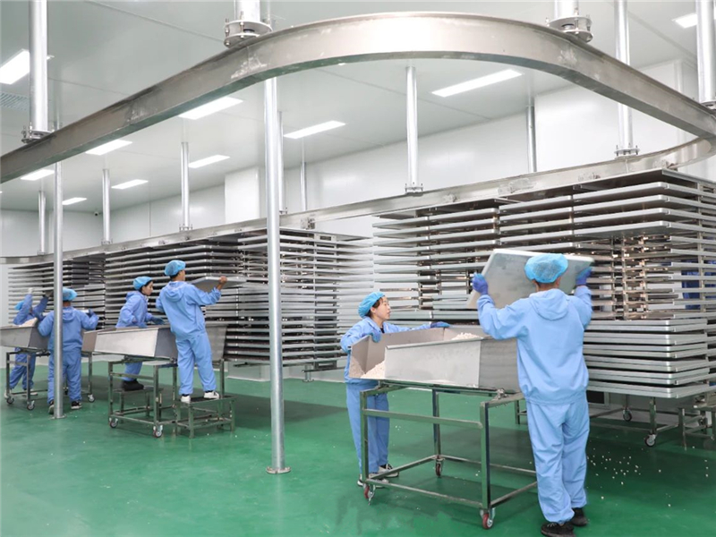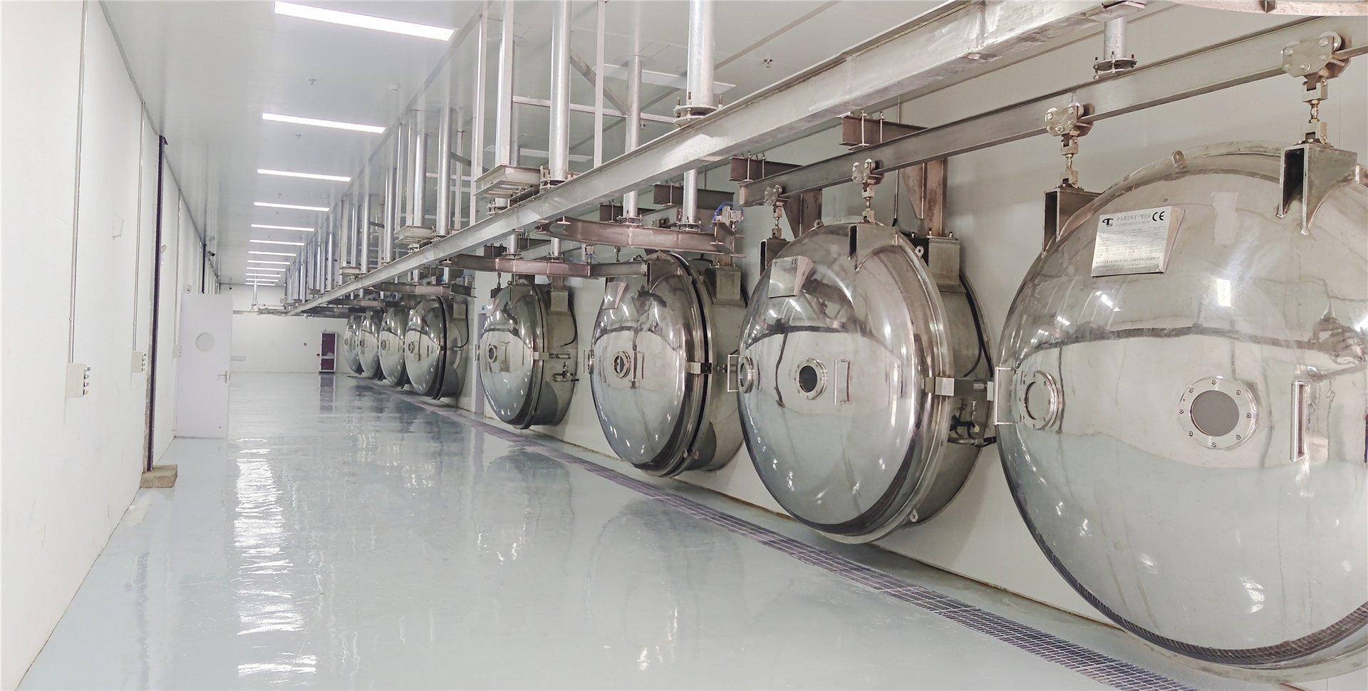 寵物食品凍干機(jī)生產(chǎn)線成套設(shè)備根據(jù)生產(chǎn)的產(chǎn)品需要和生產(chǎn)工藝流程進(jìn)行配置,比如做脆骨肉凍干和雞胸肉凍干,在前處理生產(chǎn)工藝會(huì)有不一樣,所以配置的前處理設(shè)備有差異。寵物食品正常的生產(chǎn)工藝流程是物料前處理→速凍→冷凍干燥→分揀包裝。如果需要多種寵物食品凍干加工,正常需要切粒機(jī)、粉碎機(jī)、均質(zhì)機(jī)、擠出機(jī)、模型機(jī)、滅菌機(jī)、傳送帶、AGV小車、速凍機(jī)、寵物食品凍干機(jī)、分揀機(jī)、稱重包裝機(jī)、檢測機(jī)等設(shè)備組成寵物食品凍干機(jī)生產(chǎn)線成套設(shè)備,生產(chǎn)線由PLC控制系統(tǒng)控制運(yùn)行,根據(jù)需要組建成自動(dòng)或半自動(dòng)生產(chǎn)線,通過中央控制室或者手機(jī)遠(yuǎn)程操作和監(jiān)控,實(shí)現(xiàn)寵物食品冷凍干燥機(jī)生產(chǎn)線工業(yè)化生產(chǎn)。