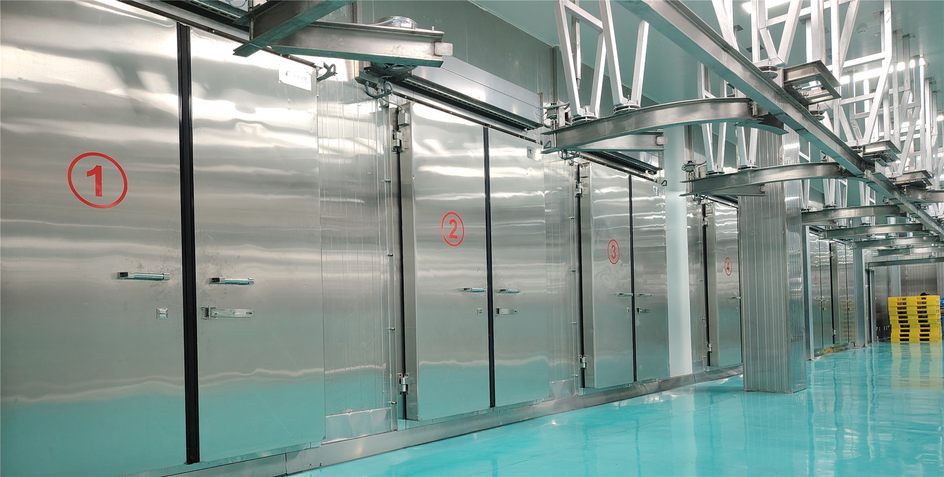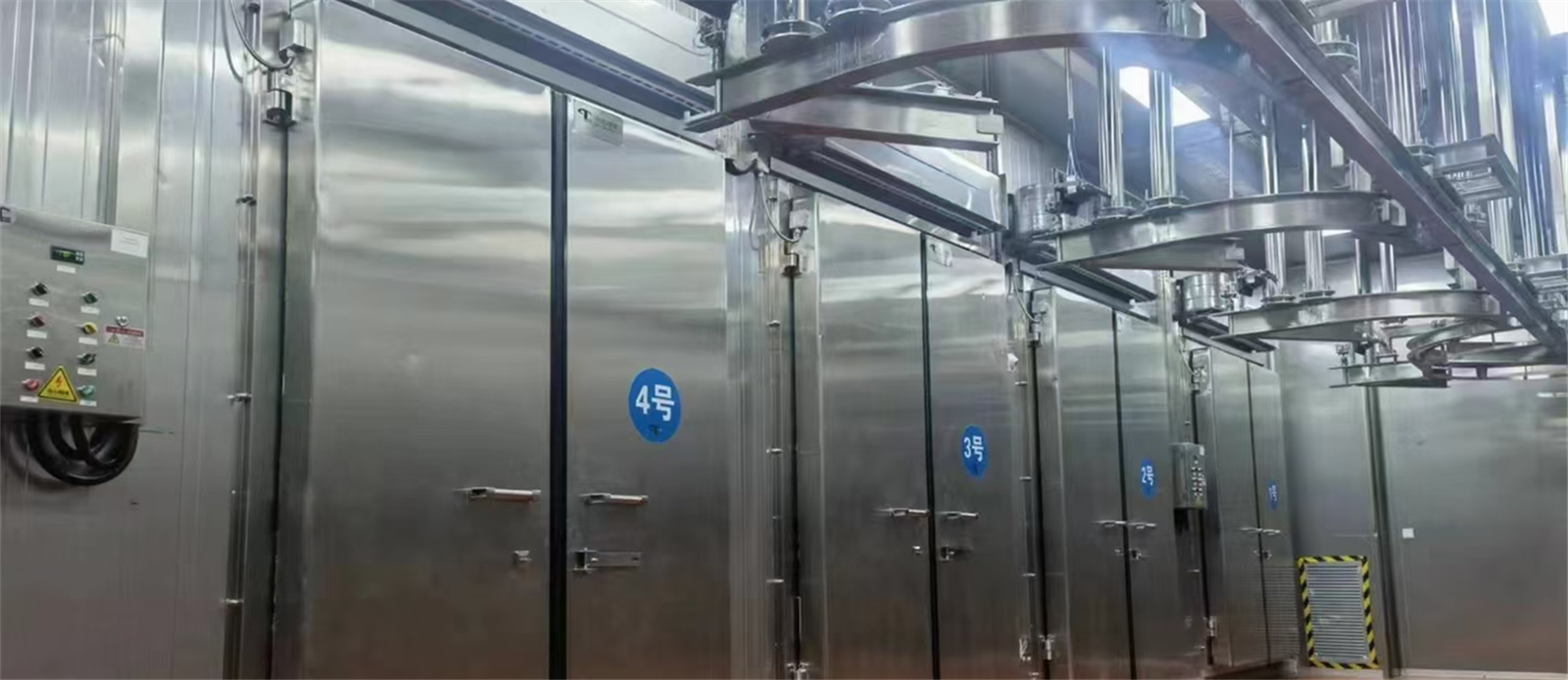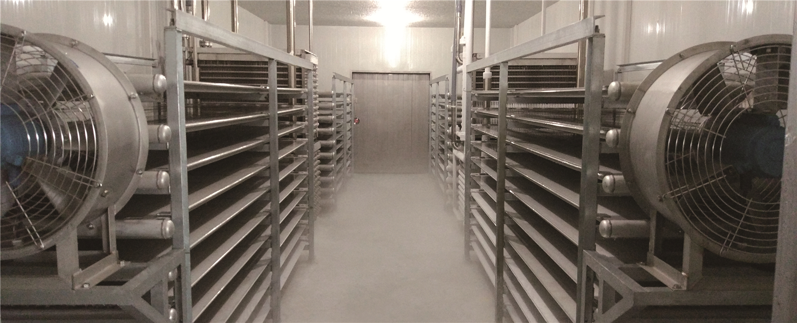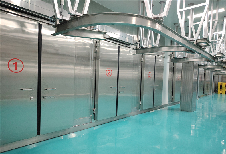 03 冷庫保溫系統(tǒng): 0-5C普通保鮮庫和氣調(diào)保鮮庫采用的是100mm聚氨酯雙面保溫庫板;-18C速凍庫側(cè)采用的是120mm聚氨酯保溫庫板。該保溫板具有防潮、防水、防火等特點,從而在確保實現(xiàn)冷庫穩(wěn)定低溫環(huán)境的同時極大地降低了后期運行成本。